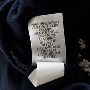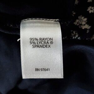 J Jill Wearever Calico Ditsy Floral Top L Petite Navy Blue White 3/4 Sleeve Cottagecore