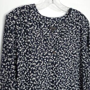 J Jill Wearever Ditsy Floral Top L Petite Navy Blue White 3/4 Sleeve Tunic