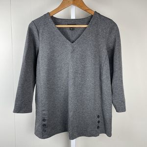 J. Jill Wearever Double Face Jersey Buttoned Hem Top Charcoal Gray Small
