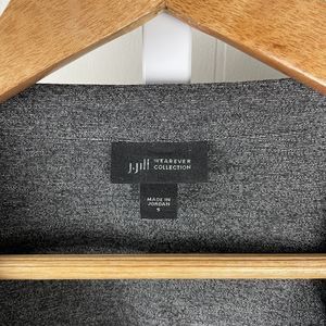 Women's J. Jill charcoal gray double-face jersey button hem top. Size Small. 65% rayon, 31% polyester, 4% spandex. Excellent condition! Measurements: 20" armpit to armpit. 25.5" length.