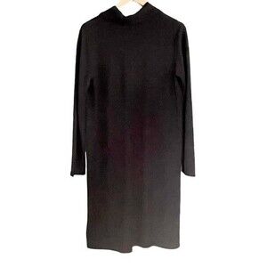 J Jill Wearever Dress Black Ribbed Jersey Knit Cowl Mock Neck Midi Womens Medium
