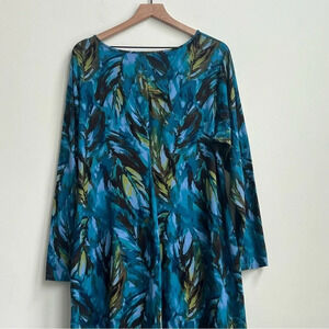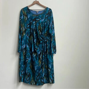 J. Jill Wearever Dress Long Sleeve Stretch Ruched Draped Feather Size 2X
