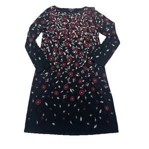 J. Jill Wearever Dress Size Small Black Red Floral Boat Neck Long-Sleeved 139041