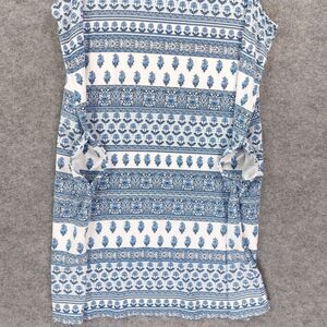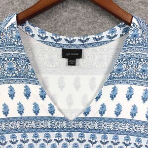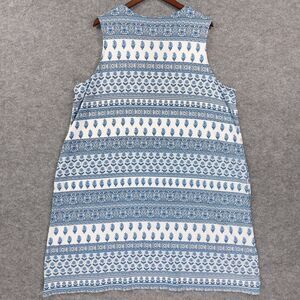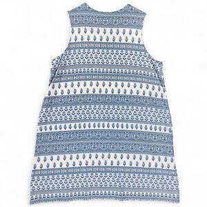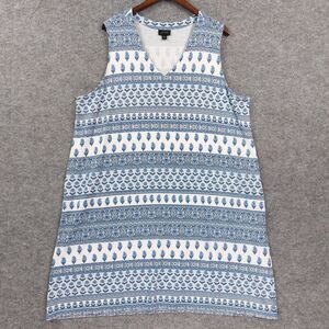 This J. Jill Wearever sleeveless shift dress features a timeless blue and white boho-inspired print in a breathable, lightweight fabric. The V-neckline and straight silhouette offer a relaxed yet polished look thats perfect for summer outings, vacations, or casual weekends. Its easy pullover design provides effortless style and comfort, making it an essential piece for warm-weather wardrobes. The crisp blue tones and detailed pattern add a touch of classic elegance with a coastal flair.