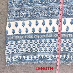 Sleeveless Shift Dress, Blue White Print Summer Dress, Boho Floral Patterned Dress, Casual Vacation Dress, Lightweight Cotton Blend Dress, V-Neck Resort Dress, Easy Pullover Shift, Coastal Style Dress, Warm Weather Day Dress
