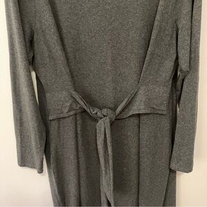 J. Jill Wearever Dress Womens 2X Gray Midi Stretch Jersey Tie Front Long Sleeve