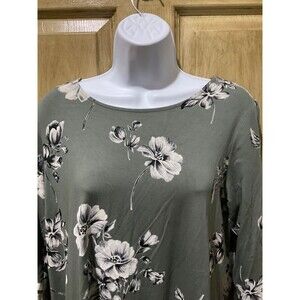 J Jill Wearever Floral Midi Dress 3/4 Sleeves Sz PM Green White Crew Neck