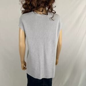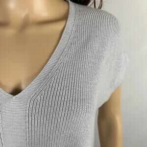 J Jill Wearever Gray Short Sleeve Top Blouse Shirt Medium Ribbed V-Neck Casual