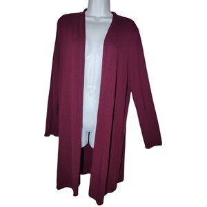 J Jill Wearever Long Line Ribbed Purple Open Cardigan W Side Vents M