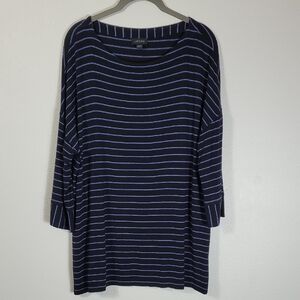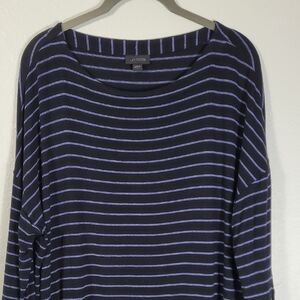 J Jill Wearever Long Sleeve Tunic Top Size L Blue Striped Rayon Relaxed Comfy