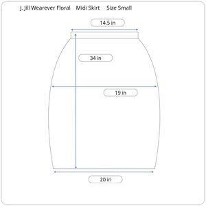 This is a very lightly worn Women's J. Jill Wearever Collection Smooth-Fit Straight Floral Midi Skirt in a Size Small. This skirt is in excellent pre-owned condition with minimal wear, no stains, and no damage. The skirt has a 14" slit up the back (middle) and a wide stretchy waistband. The material is midweight and very stretchy. The skirt is a long midi and may be more of a maxi depending on height. Please review the measurements on photo #4 to determine fit prior to purchase. If you have any questions about this item, please ask!
