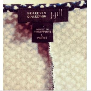 J Jill Wearever Petite Large Top Black White Blue Blouse Shirt V Neck Graphic
