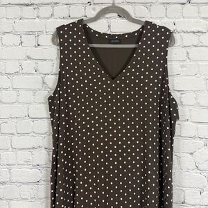 J Jill Wearever Polka Dot Jersey Knit Maxi Dress V-Neck Brown Womens Size XL