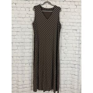 J Jill Wearever Polka Dot Jersey Knit Maxi Dress V-Neck Dark Brown White Women's Size XL.