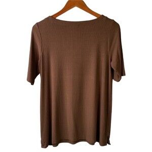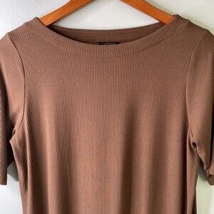 J Jill Wearever Ribbed Boat-Neck Brown Top Jersey Knit Tee Short Sleeve Normcore