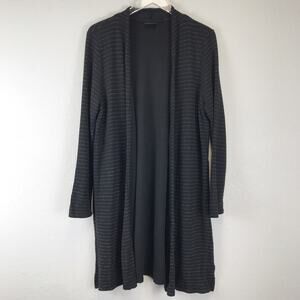 J. Jill Wearever Silver Metallic Stripe Open Front Longline Cardigan Sweater