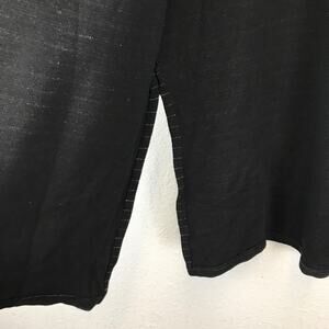 Black long sleeve open front cardigan sweater with silver metallic horizontal stripe detail, subtle ribbed texture, side slits, longer length (longline), casual, from the Wearever Collection