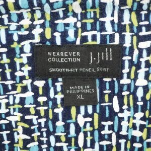 J Jill Wearever Skirt Womens XL Black Blue Yellow Stretch Knit Elastic Waist