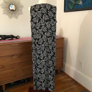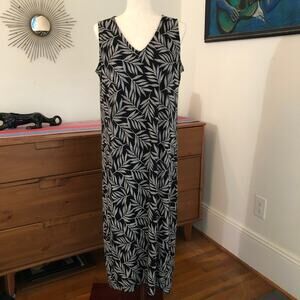 J. Jill Wearever Sleeveless Leaf Print Maxi Dress Large Black White Resort Boho