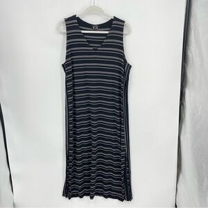 J. Jill Wearever Sleeveless Side Slit Women's Maxi Dress Black White Striped XL