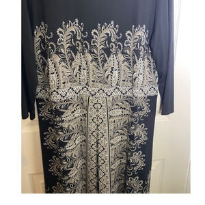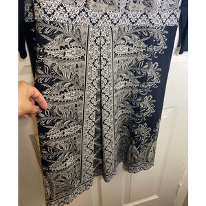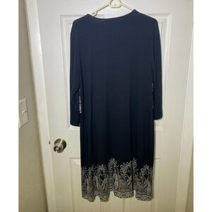 J. Jill Wearever Soft Stretchy Navy Blue Sleeve Shift Dress Size Large in great condition. Very nice looking dress with paisley pattern in front and 1 front pleat. 95% rayon and 5% lycra spandex. Laying flat: