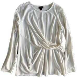 J. Jill Wearever Top Cream Ivory Draped Ruched Waist Round Neck Size Small