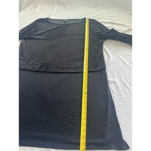 J Jill Wearever Tunic Top Womens Large Black Velvet Knit Mixed Media Side Slit L