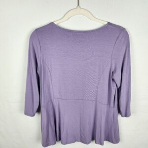 J Jill Wearever V-Neck Purple Peplum Top Size XSP 3/4 Sleeve Easter Pastel