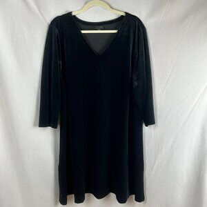 J Jill Wearever Velvet Shift Dress Women Plus 2X Black 3/4 Sleeve Flounce Hem