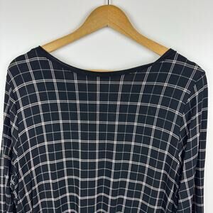 J Jill Wearever Womens Black Windowpane Tunic Top Sz L Office Career Minimalist