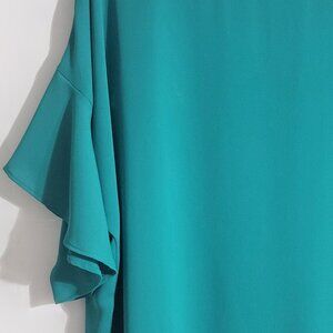 J Jill Wearever Womens Flounced Sleeve Woven Top Size L Green Round Neck Demure