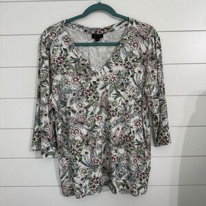J. Jill Wearever Womens Large V-Neck 3/4 Sleeve Shirt Blouse Floral Pullover