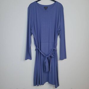 J Jill Wearever Womens Long Sleeve Dress XL Blue Belted Knee Length Career Work Office