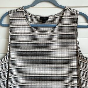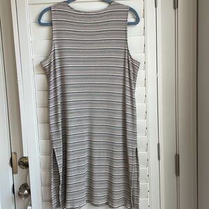 Great preowned condition. Pullover round neck stretchy knit striped knee length dress has 12” side slits. Wear as a dress, tunic or even a swim cover-up. Cute & comfy!
