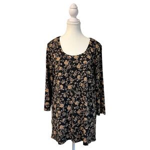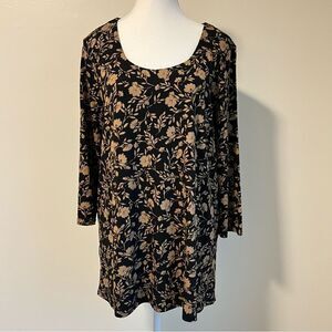 J. Jill Wearever Collection Floral Top Size LP 3/4 Sleeve