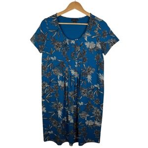 J Jill Wherever Collection Floral Pleated Dress Small Blue Comfy Office Casual