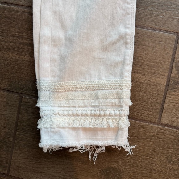 These J. Jill jeans showcase a relaxed fit with a straight leg cut and a comfortable elastic waistband. The white color offers a fresh and versatile look, while the textured fabric adds a stylish touch. The raw hem detail contributes to their modern and casual appeal.