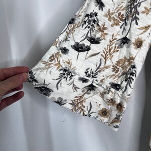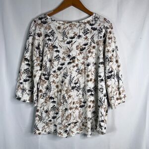 J. Jill White Floral Print 3/4 Sleeve Rough Edge Pullover Blouse Size Small