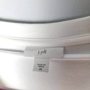 Comfortable and flattering J. Jill knit top in a clean white shade, size 3X. Made from a soft, breathable blend of 60% cotton, 35% tencel, and 5% spandex. The Tencel content gives this piece an ultra-soft, silky feel with a beautiful drape. Relaxed silhouette—ideal for layering or easy everyday wear.