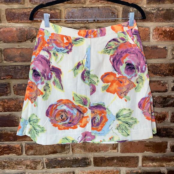 J, Jill White Lightweight Cotton Floral Mini A-Line Skirt Women's Size 4