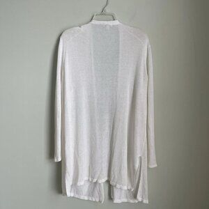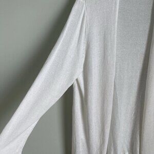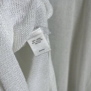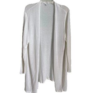 J Jill White Linen Blend Open Front 3/4 Sleeve Cardigan Sweater