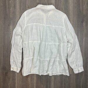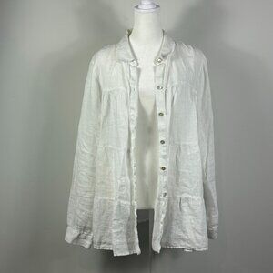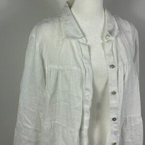 J. Jill White Linen Button Down Tiered Shirt Size L