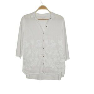 J. Jill White Linen Floral Embroidered Button Down Tunic Top