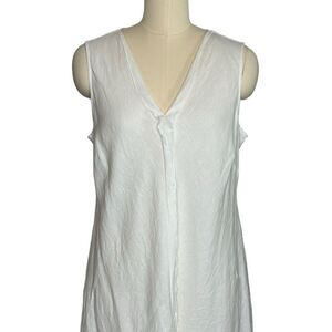 J Jill White Linen Ruffle Midi Dress | Size 14