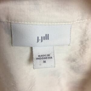 J Jill White& Red Floral Pop Over Top Long Sleeve Blouse Medium