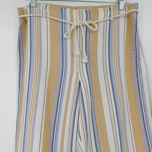J. Jill Wide Leg Linen Blend Cropped Pants In Barley Multi Striped Tie Waist Relaxed Fit High Waisted High Rise Lightweight Breathable Women's