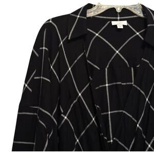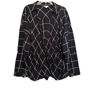 J. Jill Windowpane Twist Hem Top Womens Size 4X Black White Cotton Tencel Modal