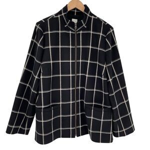 J Jill Windowpane Coat Zip Up Soft Warm Pockets Women Large Black White