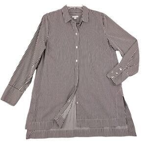 J Jill ~Woman Size M~ Cotton Silk Striped Button Up Popover Long Sleeve Maroon.