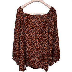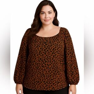J Jill Women Blouse Top Plus Size 2X Copper Leopard Witchy Whimsy Goth